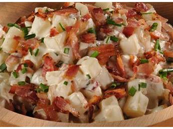 Pour bacon grease with the garlic over the potatoes, mix to incorporate.(yes, use all of the bacon grease)