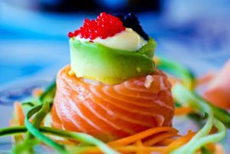 SALMON MARINADO RELLENO DE AGUACATE Y HUEVAS