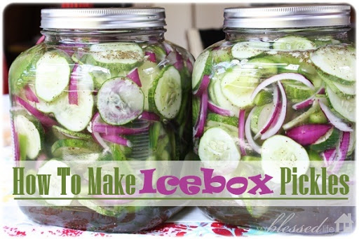 Combine all ingredients in a glass jar or crock. Cover with water and refrigerate. You can eat them immediately, but I will tell you that the pickles are much, much tastier if you let them sit in the refrigerator for a few weeks. They will keep up to 3 months in the fridge