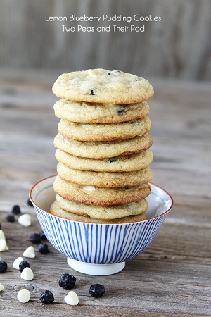 These soft summery cookies feature lemon pudding and dried blueberries for a winning flavor combination!
