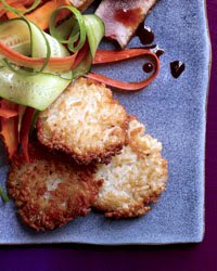 2. 1/4 inch of oil until shimmering. For each cake, pack the rice into a 1/4 cup measuring cup; unmold and flatten slightly. Cook the cakes over moderately high heat, pressing, until golden brown, about 4 minutes. Turn and cook for 4 minutes longer. Serve hot.