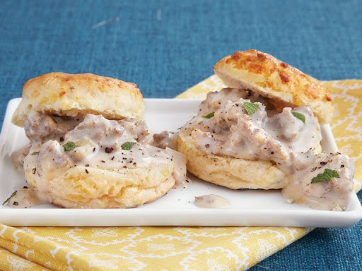 Split warm biscuits; spoon sausage gravy over biscuits.