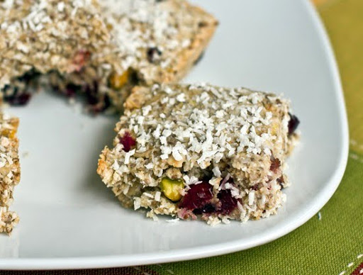 Packed with chia seeds, dried cranberries, pistachios, and lemon, these bars are chewy, light, and tropical. I like to think of them as a tropical macaroon bar. They also make a perfect breakfast when you are running out the door!