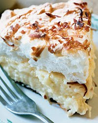 Preheat the oven to 350°. In a large, stainless-steel bowl, using an electric mixer, beat the egg whites with the cream of tartar at medium speed until frothy. Increase the speed to high and beat until firm peaks form. Add the remaining 1/4 cup of sugar, 1 tablespoon at a time, and beat until glossy. Spoon the meringue onto the custard, spreading it to the edge of the crust and swirl decoratively, using the back of a spoon. Sprinkle the remaining 1/4 cup of coconut on top. Bake until the meringue is golden and the coconut toasted, 7 minutes. Let cool, cut into wedges and serve.