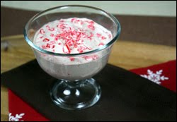 Divide mixture between 2 small bowls. Evenly top each bowl with remaining crushed candy cane. Freeze for 1 to 2 hours. Enjoy!