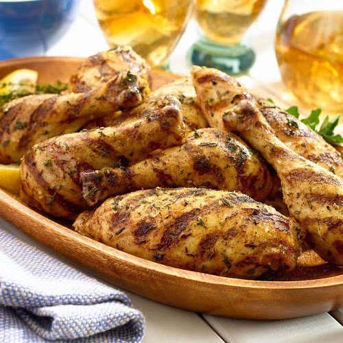 Heat grill to medium heat. Add chicken (skin side-down) to hot, greased grill grates. Cook until well browned on skin side, (about 10 minutes). Flip chicken. Grill until cooked through (internal temperature will register 165F on quick-read thermometer when inserted into thickest part of meat without touching the bone), about 15 minutes more.
