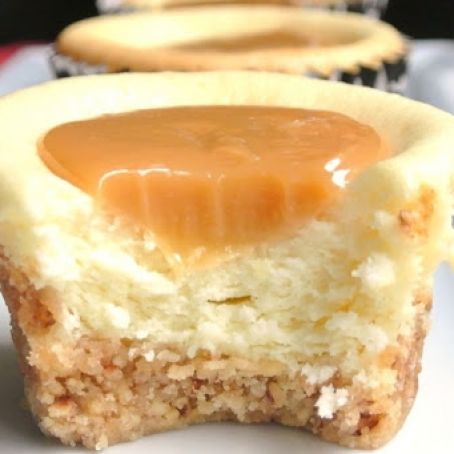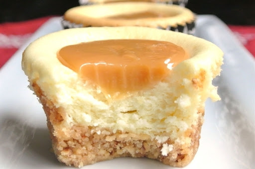 Spoon about 1 tablespoon caramel over each cheesecake.