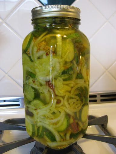 - 1 large cucumber, sliced *I used 7 small pickling cucs