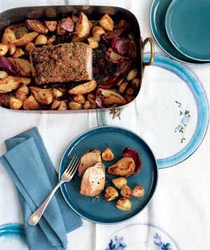 Fennel-Crusted Pork Loin w/ Roasted Potatoes and Pears