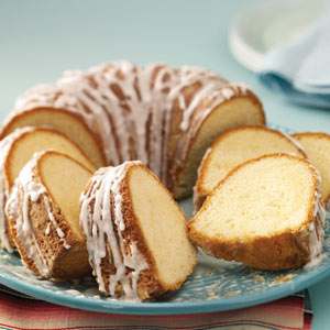 Combine the confectioners' sugar, vanilla and enough milk to achieve desired consistency; drizzle over cake. Yield: 12 servings.