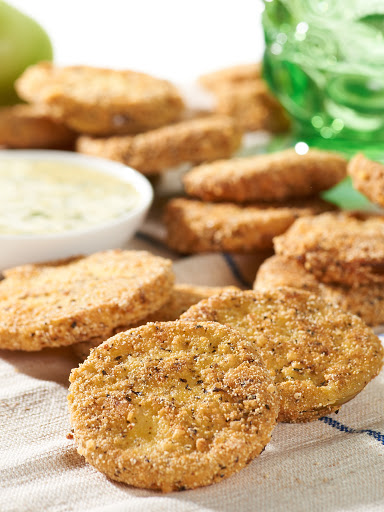 - 4 green tomatoes, ends removed and sliced 1/4" thick