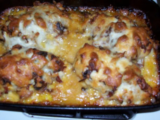 Bake at 350 degrees about 15 minutes or until cheese melts.