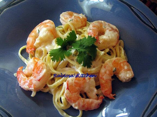 LINGUINE Y CAMARONES EN SALSA DE AJO ALFREDO