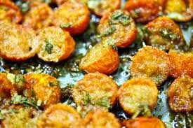 Remove the tomatoes from the oven and top with Parmesan and basil.