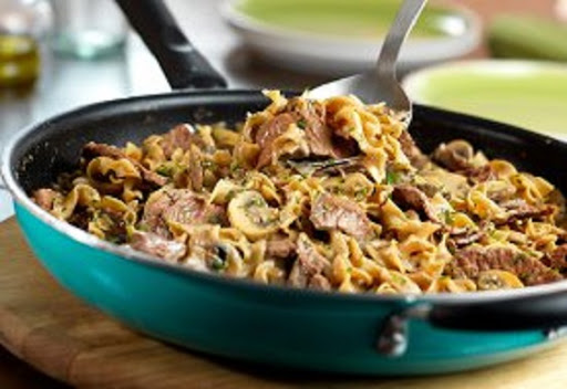 Stir the broth and mushrooms in the skillet and heat to a boil. Stir in the noodles. Reduce the heat to medium. Cover and cook for 10 minutes or until the noodles are tender.