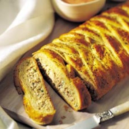 With serrated knife, trim off 1-inch from each end of loaf; set aside. Cut loaf in half, vertically. Hollow out each half, leaving 1/2-inch border (reserve bread pieces). In medium bowl combine cream cheese, celery, parsley, chili sauce, onion and lemon juice. Stir in Chicken of the Sea® Tuna, egg, pimiento and finely crumbled reserved bread; mix well. Evenly divide tuna mixture into two equal portions. Spoon mixture into bread halves. Wrap and refrigerate 2 hours or overnight. To serve cut into 6 slices. Serve warmed or cold.