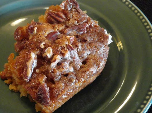 Mix the sugar, flour, salt, soda, eggs and pineapple together and pour into a 9 x 13 pan. Sprinkle the top with one cup brown sugar and one cup chopped pecans. Bake at 350 degrees for 45 minutes.