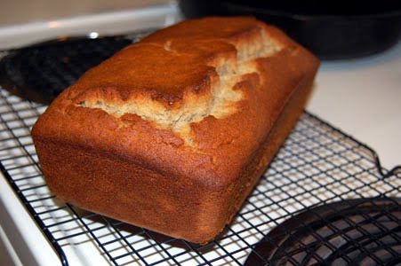 Preheat oven to 350F. Spray medium bread pan with nonstick cooking spray or grease with margarine and reserve. Combine dry ingredients in a large bowl and then make a well in the center. Add eggs, banana, sugar, and oil to the center and combine them before folding into the rest of the dry ingredients. Pour or spoon batter into your bread pan. Bake for an hour or until a toothpick comes out clean. Cool for a few minutes before removing from pan, and then cool on a wire rack until you can’t stand it any longer (ideally until bread is entirely cool, but hey, I’m only human.) Slice a piece and enjoy!
