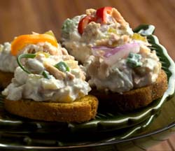 Using an electric mixer, combine cream cheese and garlic salt until fluffy. Fold in Chicken of the Sea® Tuna and remaining ingredients. Cover and refrigerate 30 minutes or up to 24 hours before serving. Serve with toasted baguettes or crackers.