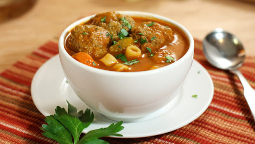 4. Meanwhile combine all meatball ingredients in a large bowl. Mix with hands to combine. Using a 1 tablespoon scoop to portion, lightly shape the scoops into meatballs using your hands to roll them. Drop them into the broth, distributing them evenly around the pot. Cover. Allow to boil for 5 minutes. Stir meatballs gently.
