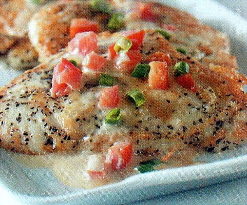Finish sauce with tomatoes and cream. Heat through, then pour over the cutlets.