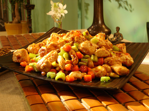 In a large bowl, combine chicken with egg whites and season with kosher salt and freshly ground black pepper to taste. In a wok or saute pan coated lightly with oil over high heat, add chicken and cook for 2 minutes. Add carrots, celery, Kung Pao Sauce and peanuts and stir-fry for about 1 minute, until combined thoroughly. Serve on a platter over white rice.