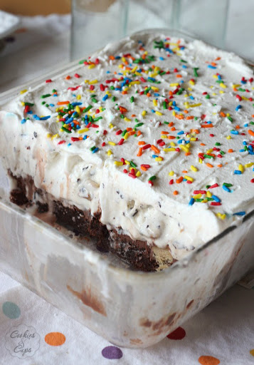 1.Spray an 8x8 or 11x7 deep-dish baking dish with cooking spray. Sides need to come up at least 3 inches to leave room for the ice cream and whipped cream layer.