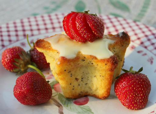 For the lemon glaze combine the confectioners sugar with lemon juice and pour over the baked muffins.