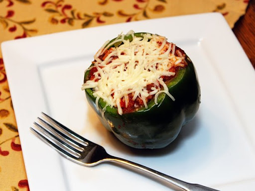 Enjoy your dinner with peppers that are stuffed with ground beef and baked to perfection.