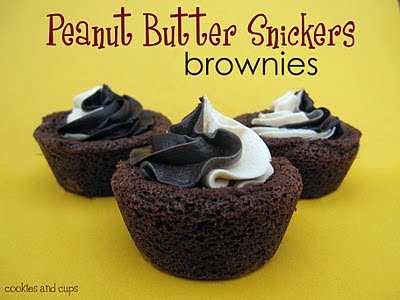 Peanut Butter Snickers Brownies topped with Chocolate and Peanut Butter Swirled Frosting 1 Picture