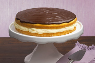 1. Beat pudding mix and 1 cup milk with whisk 2 min. Stir in Cool Whip. Let stand 5 min. Meanwhile, cut cake horizontally into 2 layers with serrated knife.