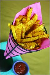Using a crinkle cutter or a knife, carefully cut squash into spears/French-fry shapes. (For exact nutritionals, measure out and use 20 oz.) Pat spears firmly with paper towels to absorb excess moisture. Sprinkle evenly with salt.