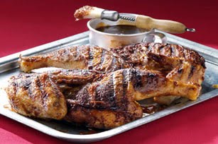 Baste chicken with barbecue sauce of choice and cook for about 10 more minutes, turning and basting several times with sauce, until sauce caramelizes nicely and chicken is done.