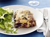 Reduce the oven to 350 degrees. Layer half of the eggplant on top of the potatoes. Cover with half of the meat sauce, then half of the chard. Repeat with the remaining eggplant, meat sauce and chard. Pour the custard sauce on top, then sprinkle with the remaining 1/2 cup kefalotiri cheese. Bake the moussaka, uncovered, until the custard is set and lightly browned, about 1 hour. Let rest 20 minutes before serving.