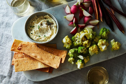 Place the peeled garlic in the bowl of a food processor and process for a few seconds, until coarsely chopped. Add the cheese, white wine (or broth), pepper, and salt (if needed) and process for 30 to 45 seconds, until the mixture is soft and creamy but not too smooth. Place in a crock, cover with plastic wrap and refrigerate until ready to use.