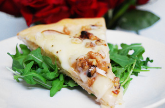 This delicious pizza is a great idea for a super easy lunch or weeknight dinner. All you need is a pizza crust, brie, butter, pears, and walnuts!
