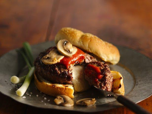 Mozzarella-Stuffed Mushroom Pizza Burgers