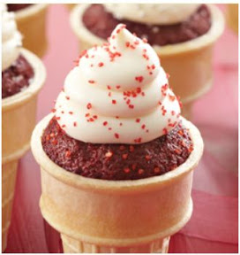 7. Icing: In a medium bowl, beat cream cheese and butter until well combined. Add vanilla and icing sugar and beat until smooth and creamy. Ice each cone and decorate.