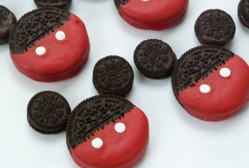 Cookies in the shape of Mickey Mouse made of Oreos and candy melts