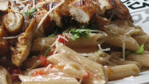 "An Italian version of stir-fry, this tasty dish mixes cubed, boneless chicken and penne pasta with red and green peppers, garlic, tomatoes, oregano, and basil for an easy weeknight supper."