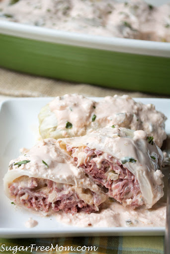 Lay one cabbage on work surface, fill a small amount in the center of the cabbage leaf. Roll up one side, then ends, then other side, and place seam side down into pan. Make 16 rolls.