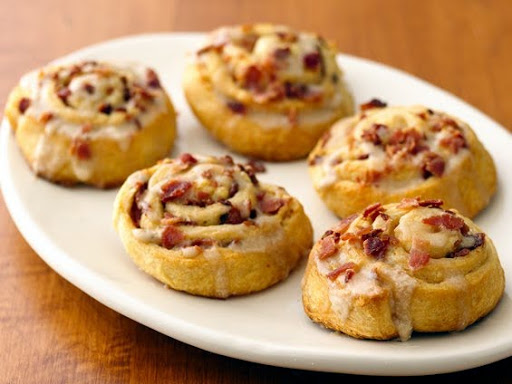 Heat oven to 375°F. Microwave bacon as directed on package until very crisp. Drain on paper towels. Set aside to cool.2Generously spray large cookie sheet (dark cookie sheet not recommended) with Crisco® Original No-Stick Cooking Spray, or line with cooking parchment paper. Unroll dough sheet on work surface; press into 12x8-inch rectangle.3In small bowl, mix 2 tablespoons of the butter and 2 tablespoons of the syrup with fork or wire whisk until smooth and creamy. Spread mixture evenly over dough, covering to edges. Finely chop bacon; reserve 1 tablespoon for garnish. Spread remaining bacon evenly over butter mixture. Starting at short end, roll up dough; pinch edge to seal. Wrap roll in plastic wrap; refrigerate 5 minutes to chill so dough will be easier to cut.4Unwrap roll; place seam side down on cutting board. Using serrated knife, cut roll into 12 (about 3/4-inch) slices. Place slices, cut sides up, on cookie sheet.5Bake 8 to 13 minutes or until light golden brown. Place waxed paper under cooling rack. Remove rolls from cookie sheet to cooling rack; cool 5 minutes.6Meanwhile, in small bowl, mix powdered sugar, remaining 1 tablespoon butter and remaining 3 tablespoons syrup with wire whisk until smooth. Drizzle icing over rolls. Garnish with reserved bacon..