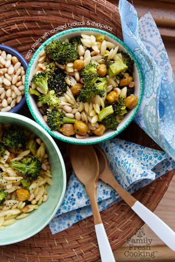 ◦Toss orzo with roasted broccoli & chickpeas. To taste: mix with lemon juice and additional curry powder, pepper and garlic salt if needed. Top with toasted pine nuts.