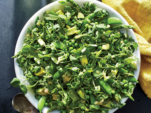 This salad is absolutely chock-full of lovely green spring produce, with textures ranging from crunchy to creamy. You can make the zippy lemon dressing and blanch, drain, and chill the peas and asparagus up to 2 days ahead, but combine all the elements shortly before serving to preserve the color of the avocado and the crunch of the greens. Delicate pea tendrils or shoots would be spectacular here, but watercress makes a delicious peppery substitute. Though you may be tempted to use only one herb, we urge you to use both: The parsley adds a burst of freshness, and the mint contributes deep herbal goodness.
