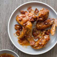 3. Deep fry wingettes in vegetable oil at 350 for 10 minutes. Drain on paper towels. Add wings to sauce. Cover container and shake to thoroughly coat wings.