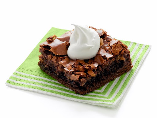Bake the cake for 40 to 50 minutes. Be careful not to overcook it: The center should still be a little gooey. Let partially cool on a wire rack before slicing. Serve with whipped cream, if desired.