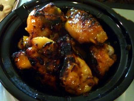 Places wings on a broiler pan sprayed with nonstick cooking spray. Cook wings on low broil for 2 minutes on each side. Then set the oven to 375ºF and cook for 20 minutes. Remove and add more sauces before serving. (Remember to discard the marinade and not use for sauce.)
