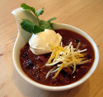 In a skillet, saute the onion, jalapeno, and garlic until the onion is opaque. Pour this mixture into the pot with the meat and add the remaining ingredients. Cook covered over low heat for about 2 ½ - 3 hrs, adding more beer as needed. Stir occasionally, and add the cliantro just before serving garnished with the cheese and sour cream.