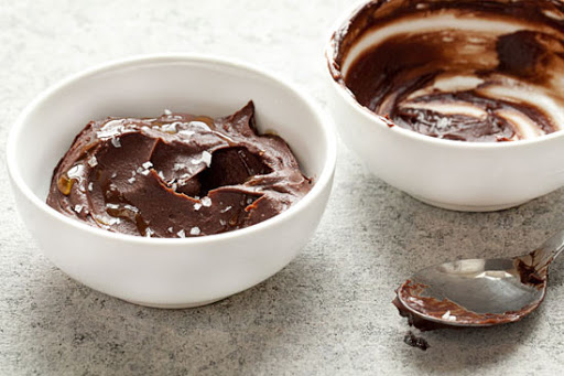1. Preheat the oven to 250°. In a medium saucepan, add the butter, granulated sugar, brown sugar, cocoa powder and cream. Place the pan over medium heat and whisk constantly until the mixture begins to simmer around the edges, the butter melts and the sugars dissolve. Remove the pan from the heat.