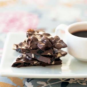 Refrigerate the chocolate bark until completely firm, about 2 hours. Break or cut into chunks. Store in an airtight container in the refrigerator for up to 1 month. Makes 12 oz. bark; serves 4.